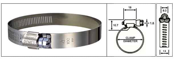 Clamp, Hose Clamp, Coated Steel Bolt, Stainless Steel Band