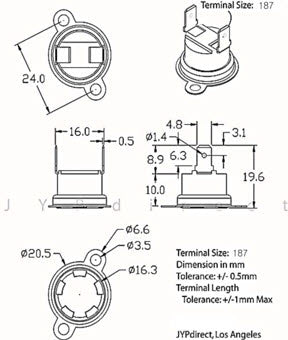 Thermostat, 1/2" Disc, Auto-reset, Normally Close, Vertical, Adjustable Angle Base Flange, R-Type (Reverse Type), Terminal Size 187